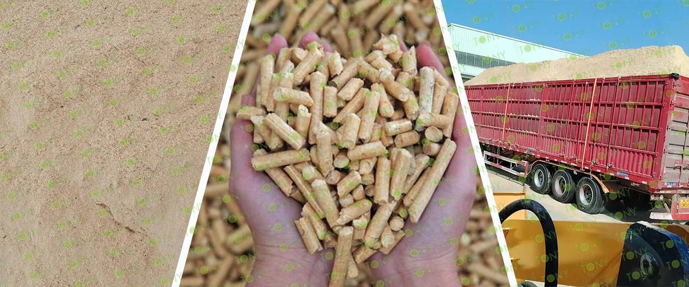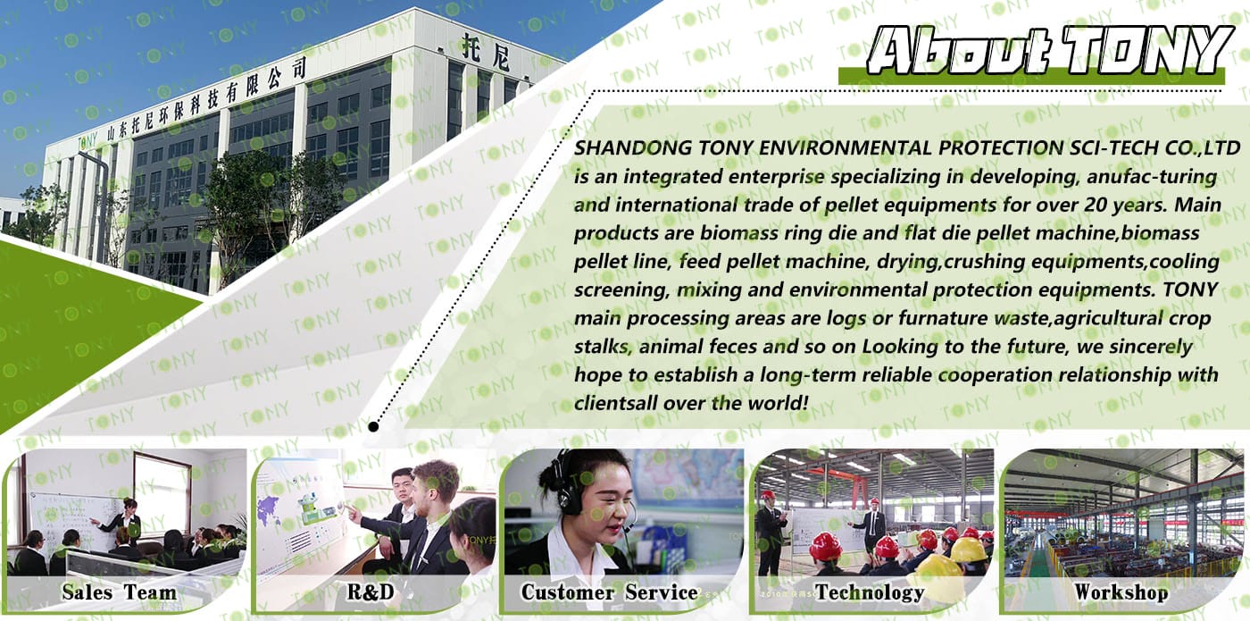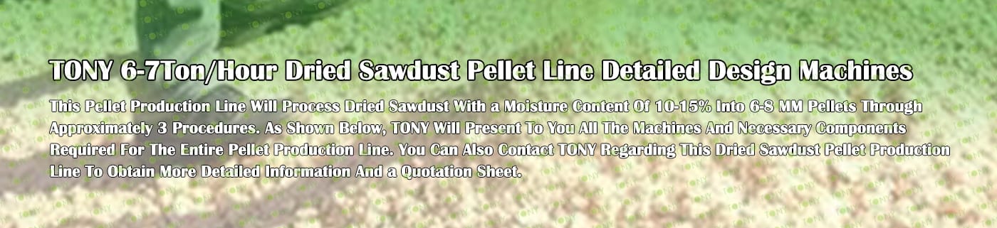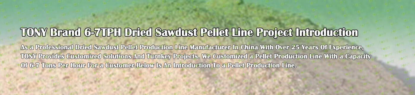 TONY Brand 6-7Ton/Hour Dried Sawdust Pellet Manufacturing Plant can take dried sawdust,wood chips, various types of wood - related biomass materials, such as wood pallets ,branches, wood logs, and wood shavings. After pretreatment and processing, dried sawdust is solidified into high - density wood pellet fuel. This fuel is an ideal substitute for coal and oil and plays a role in energy conservation and emission reduction.