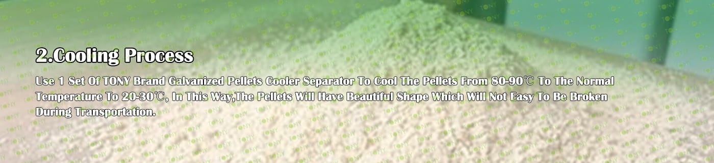 6. Main Equipment: TONY Pellet Machine TYJ551-Ⅲ-132KW, Galvanized Pellets Cooler, Double Packing Machine and Belt Conveyors