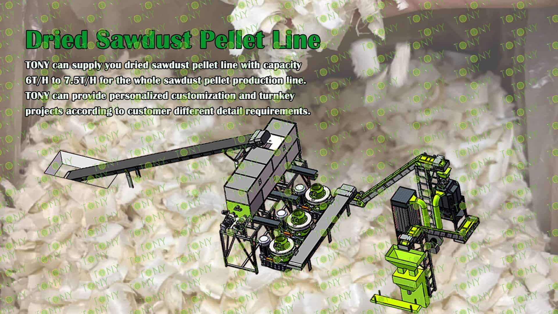 3.TONY Brand 6-7.5Ton /Hour Dried Sawdust Pellet Line Project Process