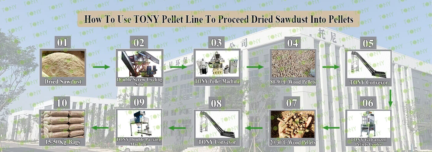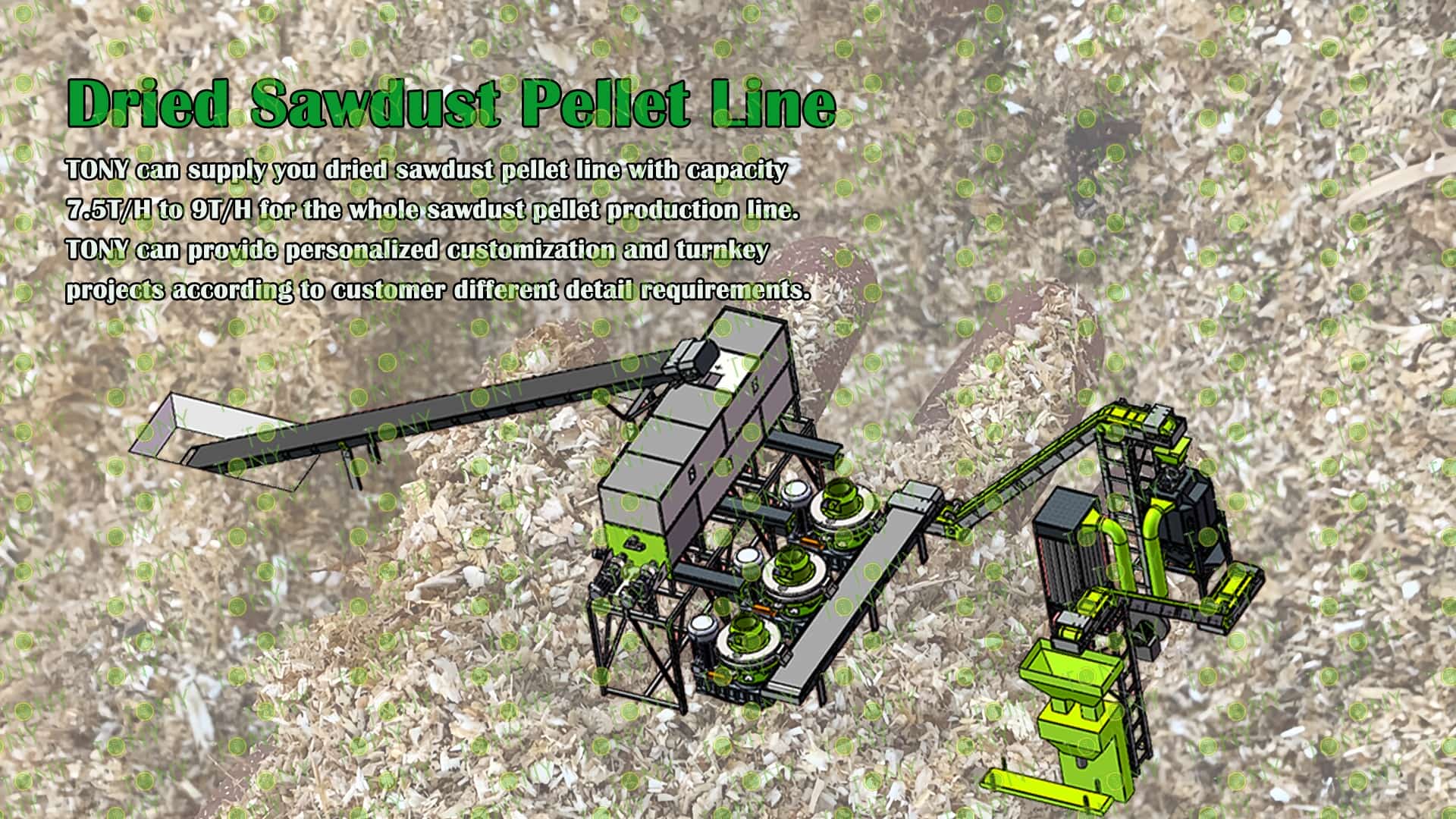 3.TONY Brand 7.5-9Ton /Hour Dried Sawdust Pellet Line Project Process