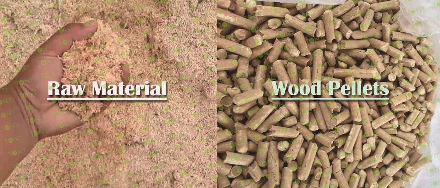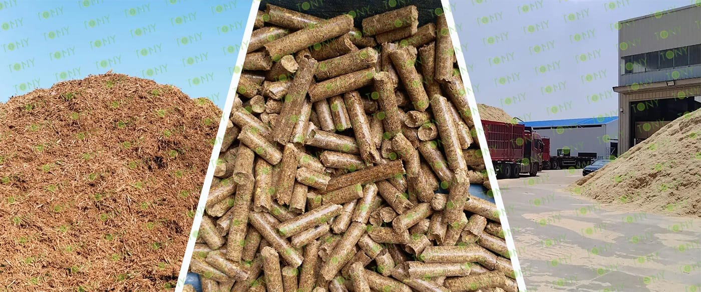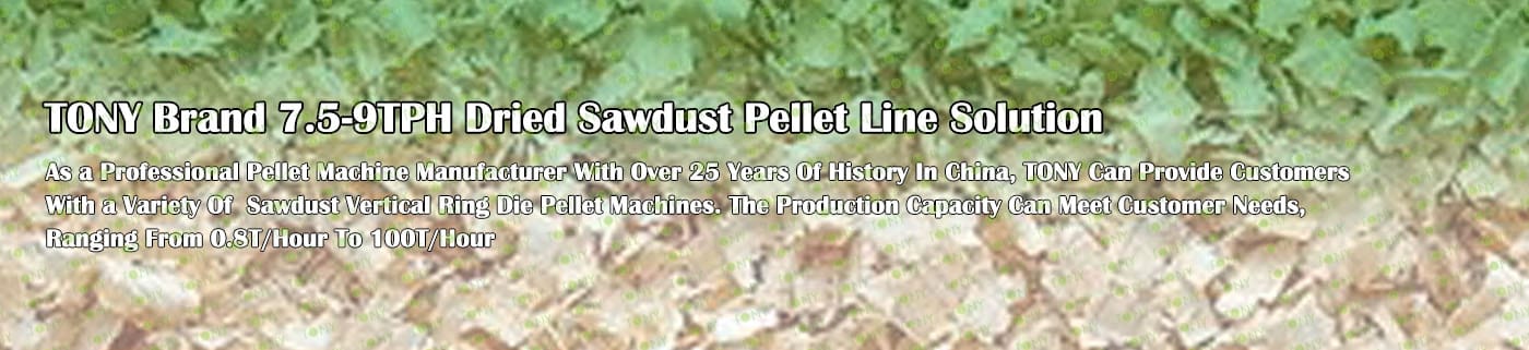 TONY Brand 7.5-9Ton/Hour Dried Sawdust Pellet Manufacturing Plant can take dried sawdust,wood chips, various types of wood - related biomass materials, such as wood pallets ,branches, wood logs, and wood shavings. After pretreatment and processing, dried sawdust is solidified into high - density wood pellet fuel. This fuel is an ideal substitute for coal and oil and plays a role in energy conservation and emission reduction.
