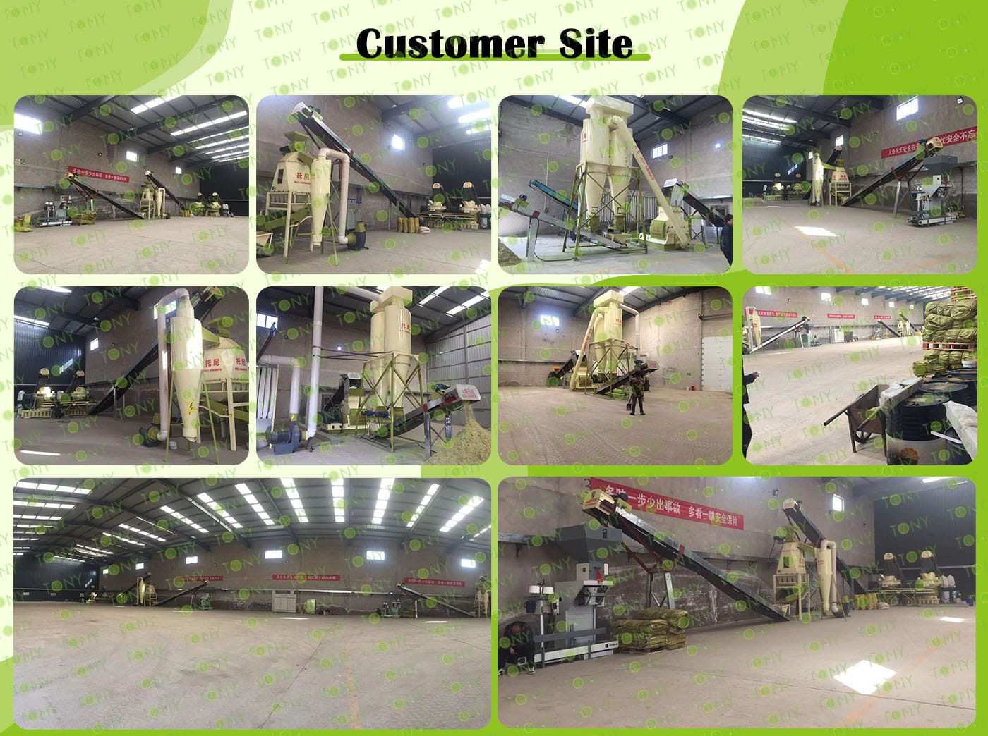 6. Main Equipment: TONY Pellet Machine TYJ760-Ⅲ-160KW, Galvanized Pellets Cooler, Double Packing Machine and Belt Conveyors
