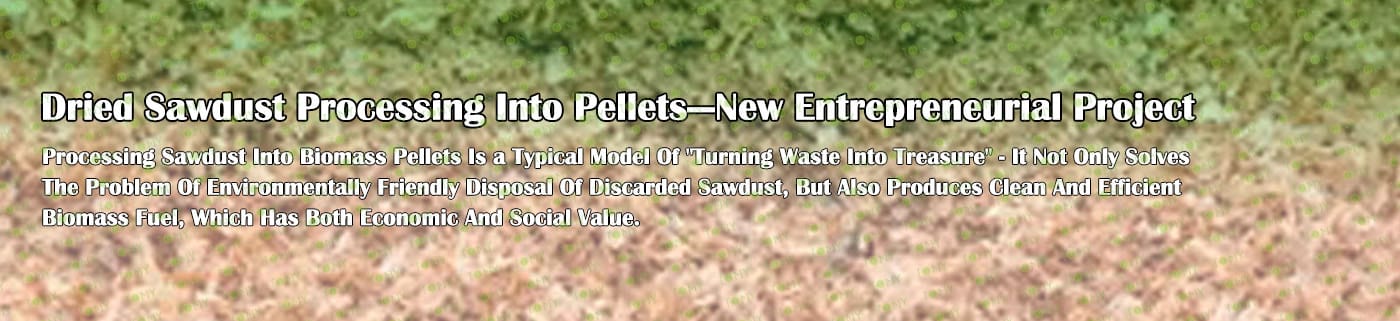 Dry sawdust enters the pellet machine's compression system and is extruded into pellets under high temperature and pressure.