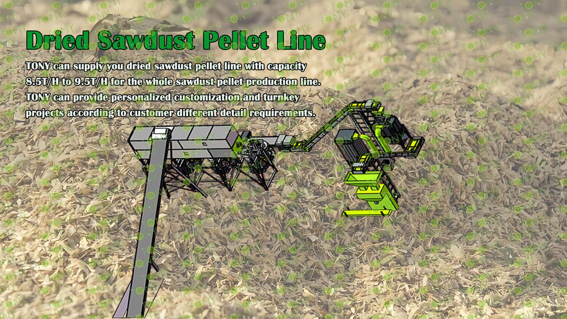 3.TONY Brand 8.5-9.5Ton /Hour Dried Sawdust Pellet Line Project Process