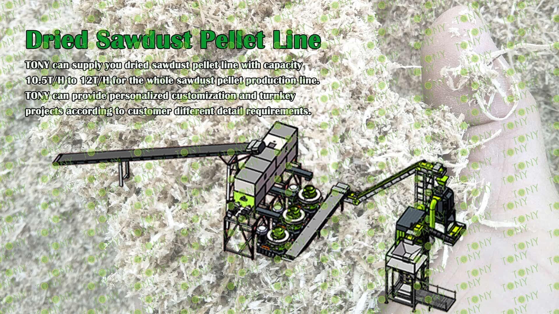 3.TONY Brand 10.5-12 Ton /Hour Dried Sawdust Pellet Line Project Process