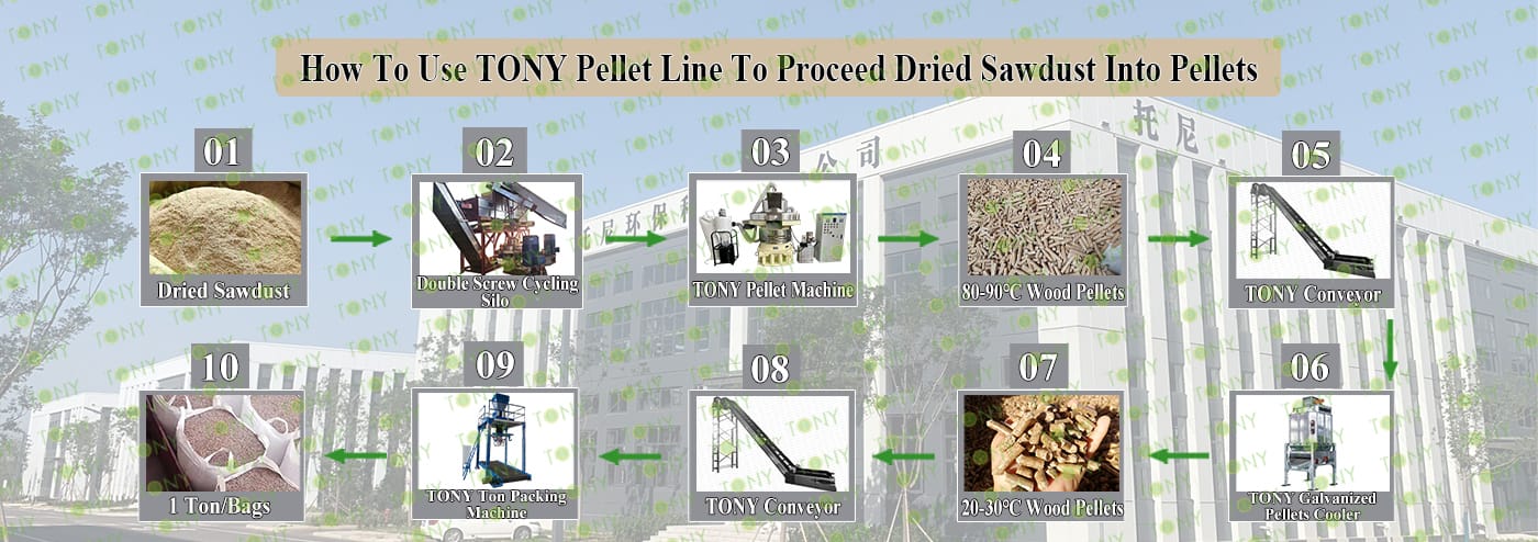 3.TONY Brand 12-14Ton /Hour Dried Sawdust Pellet Line Project Process