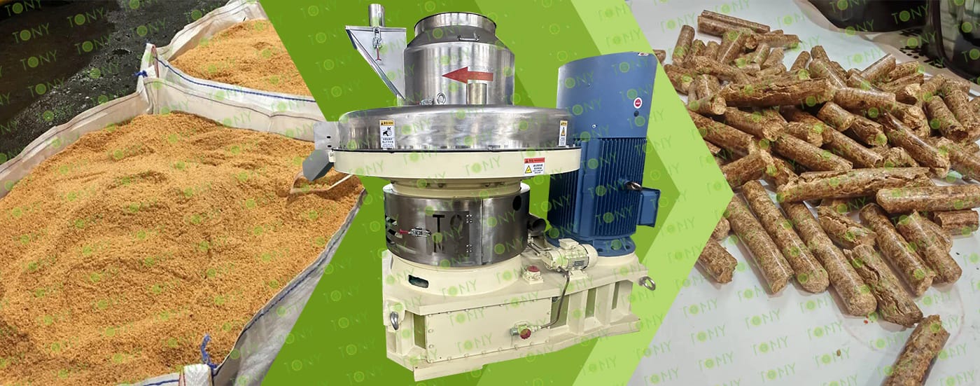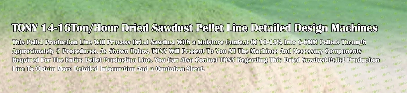 TONY Brand 14-16Ton/Hour Dried Sawdust Pellet Manufacturing Plant can take dried sawdust,wood chips, various types of wood - related biomass materials, such as wood pallets ,branches, wood logs, and wood shavings. After pretreatment and processing, dried sawdust is solidified into high - density wood pellet fuel. This fuel is an ideal substitute for coal and oil and plays a role in energy conservation and emission reduction.