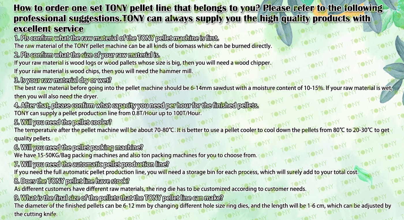 | Next, TONY Will Introduce To You All The Necessary Machinery That Will Be Used For The Whole Pellet Production Line. Some Machines Can Be Custom - Made By Customers According To Different Customers' Detailed Demands. Contact TONY For More Details, Including Quotation And Layout. | |||