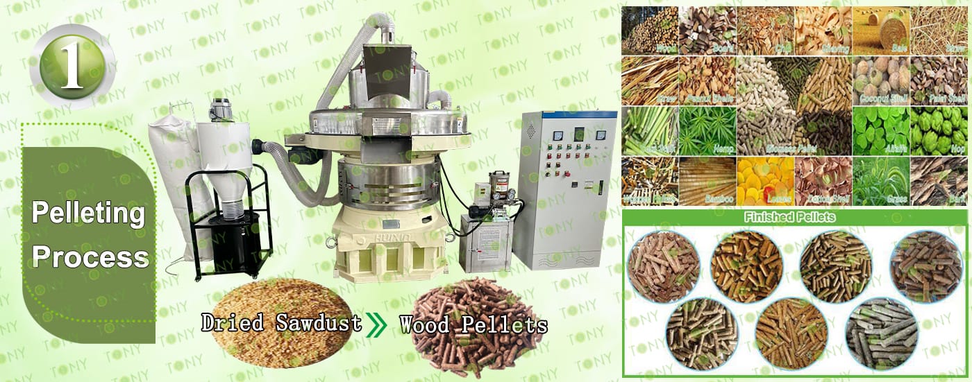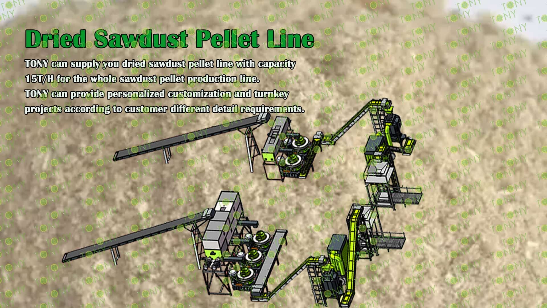 3.TONY Brand 15Ton /Hour Dried Sawdust Pellet Line Project Process