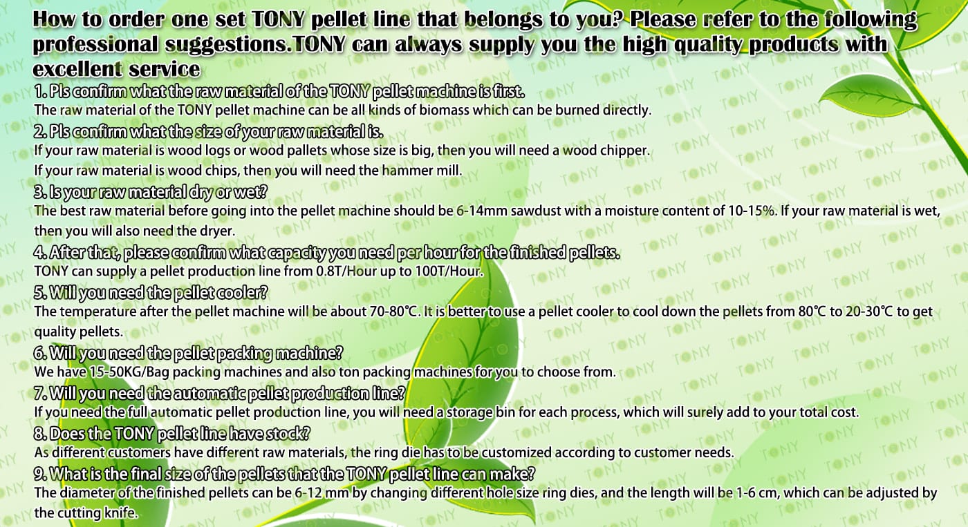 | Next, TONY Will Introduce To You All The Necessary Machinery That Will Be Used For The Whole Pellet Production Line. Some Machines Can Be Custom - Made By Customers According To Different Customers' Detailed Demands. Contact TONY For More Details, Including Quotation And Layout. | |||