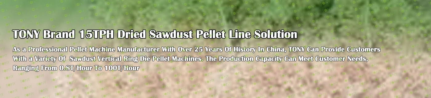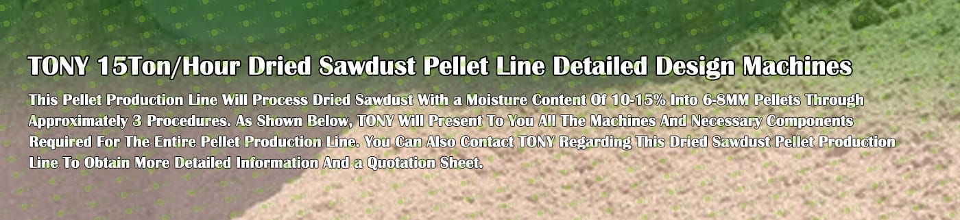 TONY Brand 15Ton/Hour Dried Sawdust Pellet Manufacturing Plant can take dried sawdust,wood chips, various types of wood - related biomass materials, such as wood pallets ,branches, wood logs, and wood shavings. After pretreatment and processing, dried sawdust is solidified into high - density wood pellet fuel. This fuel is an ideal substitute for coal and oil and plays a role in energy conservation and emission reduction.