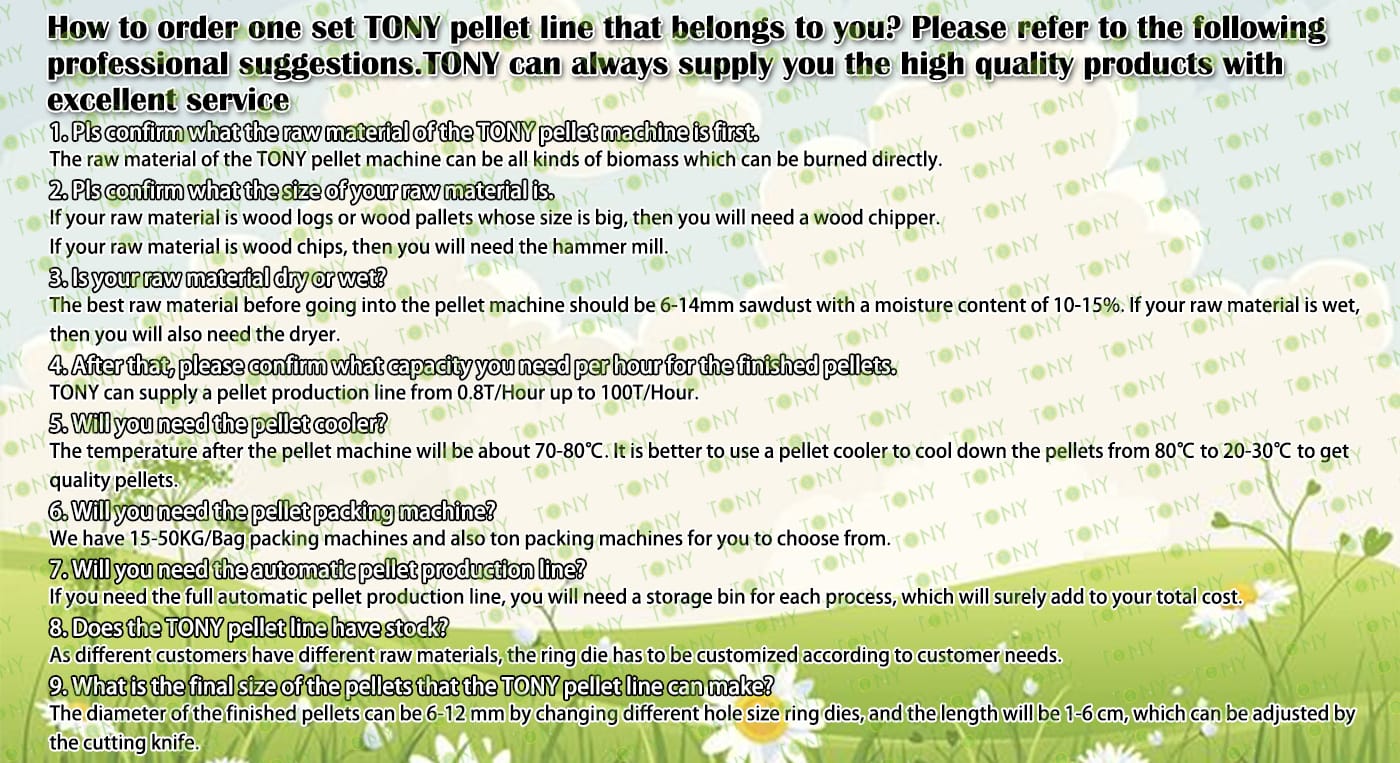 | Next, TONY Will Introduce To You All The Necessary Machinery That Will Be Used For The Whole Pellet Production Line. Some Machines Can Be Custom - Made By Customers According To Different Customers' Detailed Demands. Contact TONY For More Details, Including Quotation And Layout. | |||