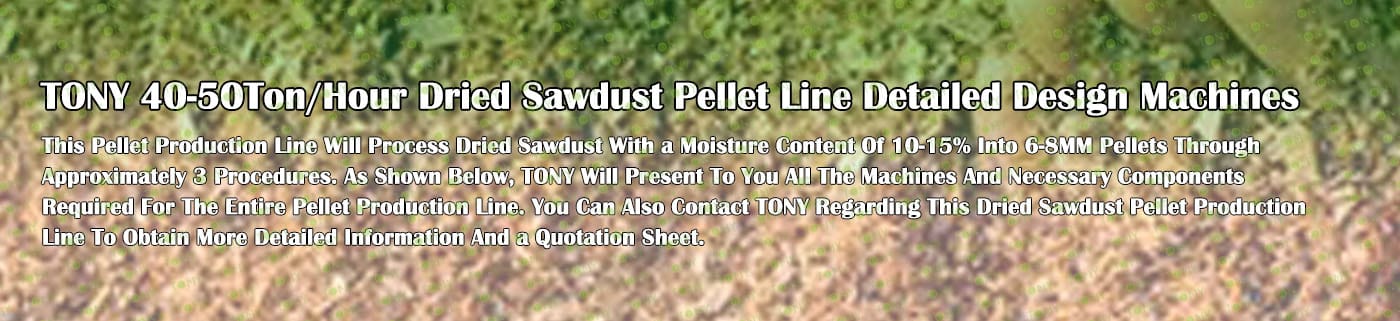 TONY Brand 40-50Ton/Hour Dried Sawdust Pellet Manufacturing Plant can take dried sawdust,wood chips, various types of wood - related biomass materials, such as wood pallets ,branches, wood logs, and wood shavings. After pretreatment and processing, dried sawdust is solidified into high - density wood pellet fuel. This fuel is an ideal substitute for coal and oil and plays a role in energy conservation and emission reduction.
