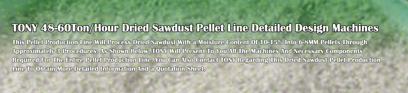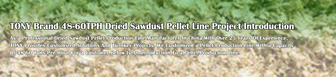 TONY Brand 48-60Ton/Hour Dried Sawdust Pellet Manufacturing Plant can take dried sawdust,wood chips, various types of wood - related biomass materials, such as wood pallets ,branches, wood logs, and wood shavings. After pretreatment and processing, dried sawdust is solidified into high - density wood pellet fuel. This fuel is an ideal substitute for coal and oil and plays a role in energy conservation and emission reduction.