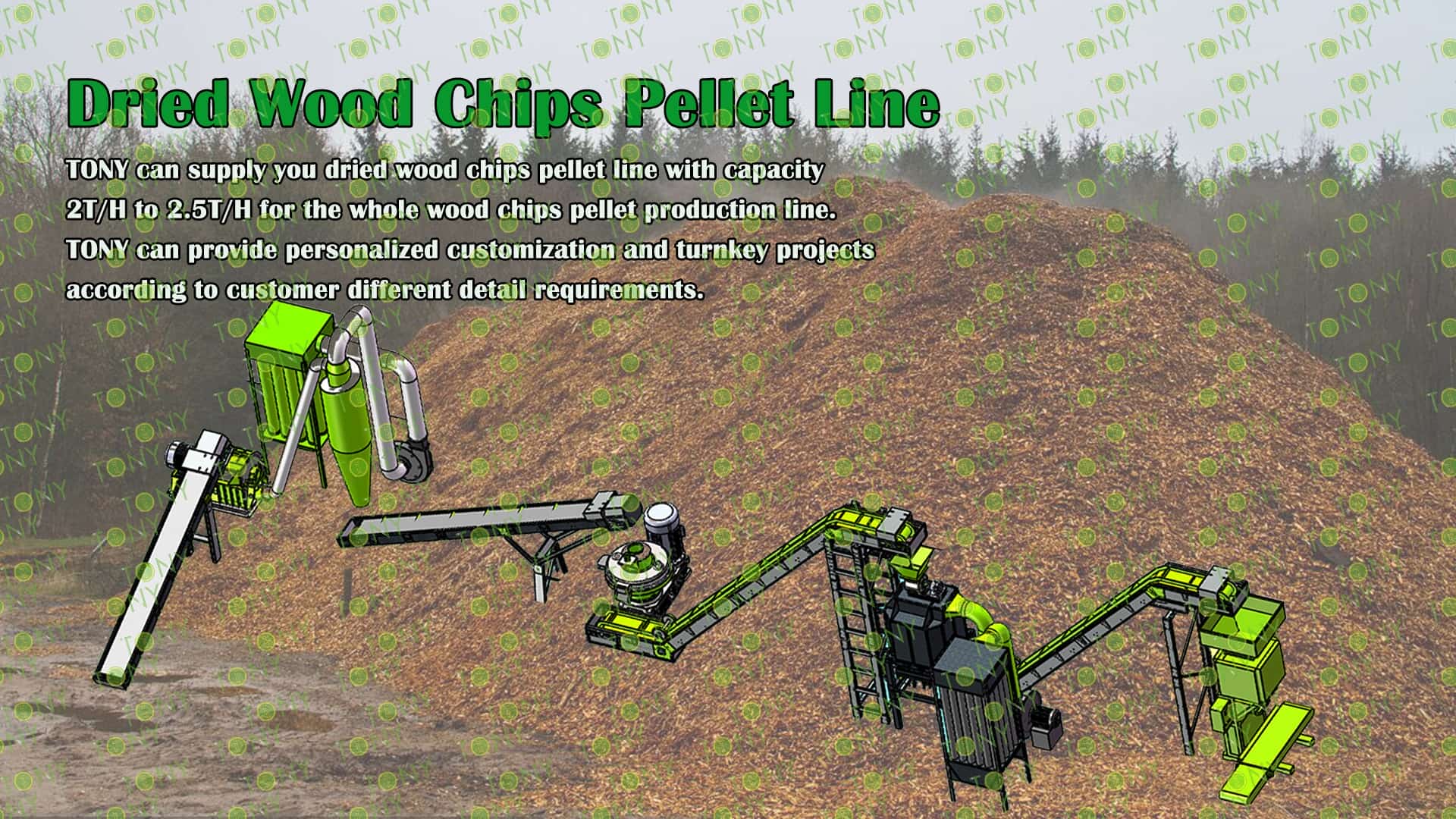 3.TONY Brand 2-2.5Ton /Hour Dried Wood Chips Pellet Line Project Process