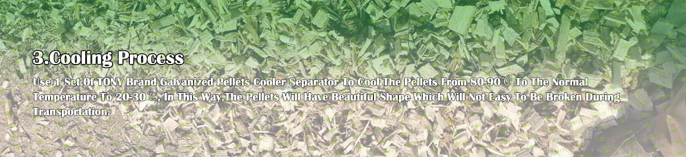 6. Main Equipment: Effective Hammer Mill-TFD65*75-55KW, TONY Pellet MachineTYJ551-Ⅲ-132KW, Galvanized Pellets Cooler, Semi-automatic Packing Machine and Belt Conveyors