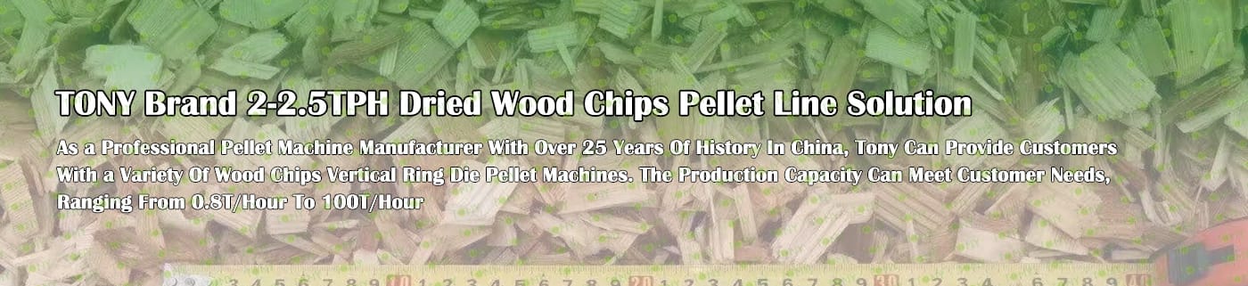 TONY Brand 2-2.5Ton/Hour Dried Wood Chips Pellet Manufacturing Plant can take dried wood chips, various types of wood - related biomass materials, such as wood pallets ,branches, wood logs, and wood shavings. After pretreatment and processing, dried wood chips is solidified into high - density wood pellet fuel. This fuel is an ideal substitute for coal and oil and plays a role in energy conservation and emission reduction. At present, it has been widely used in regions rich in wood resources.