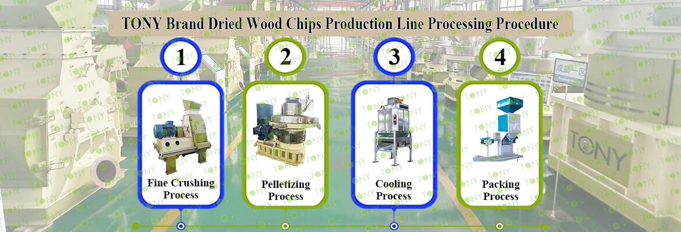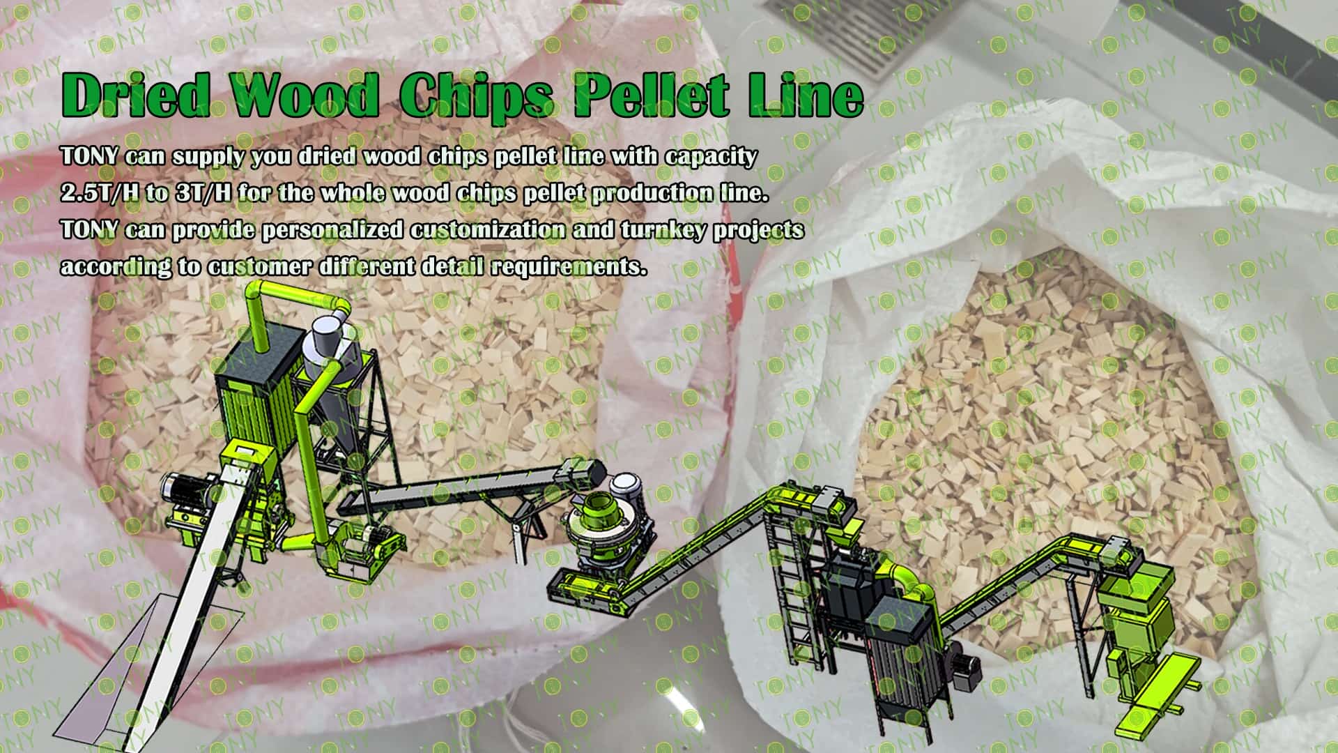 3.TONY Brand 2.5-3Ton /Hour Dried Wood Chips Pellet Line Project Process