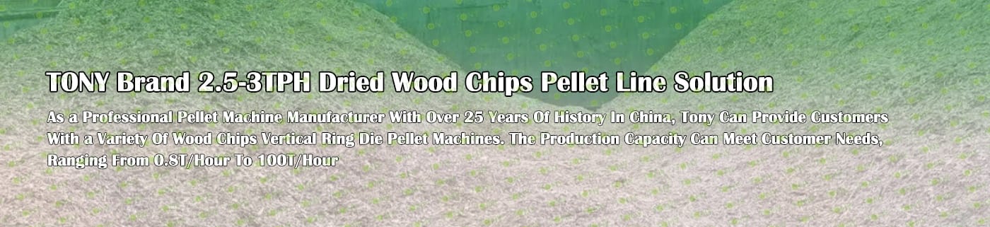 TONY Brand 2.5-3Ton/Hour Dried Wood Chips Pellet Manufacturing Plant can take dried wood chips, various types of wood - related biomass materials, such as wood pallets ,branches, wood logs, and wood shavings. After pretreatment and processing, dried wood chips is solidified into high - density wood pellet fuel. This fuel is an ideal substitute for coal and oil and plays a role in energy conservation and emission reduction. At present, it has been widely used in regions rich in wood resources.