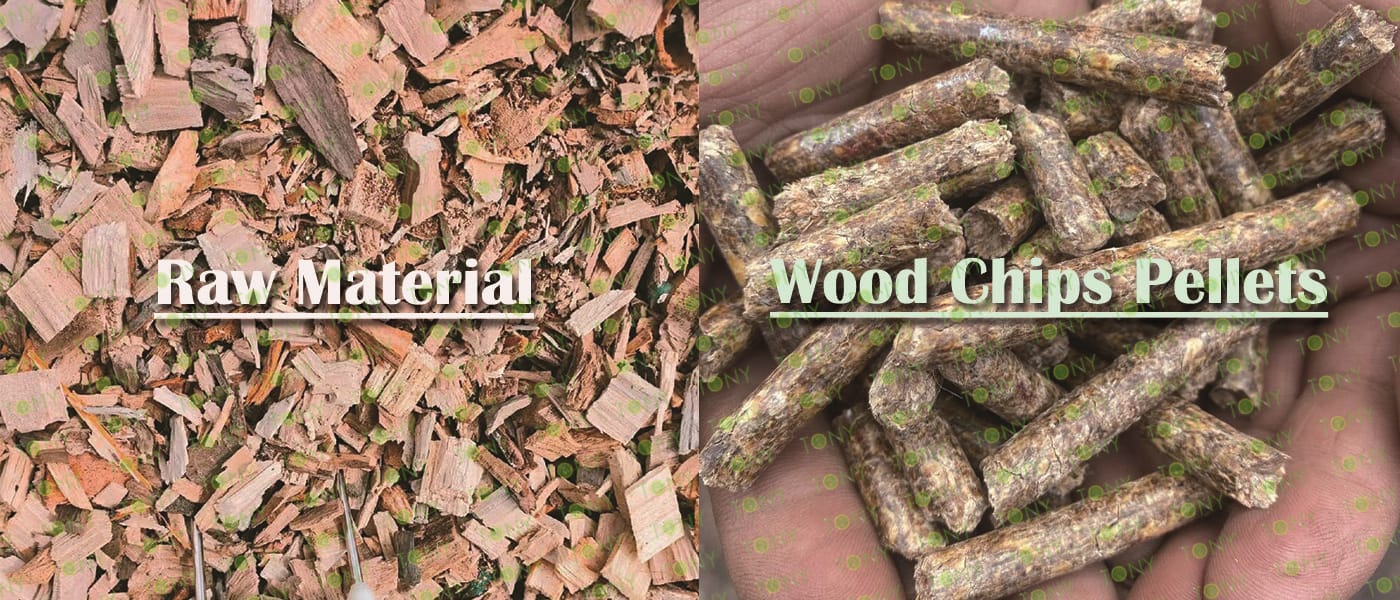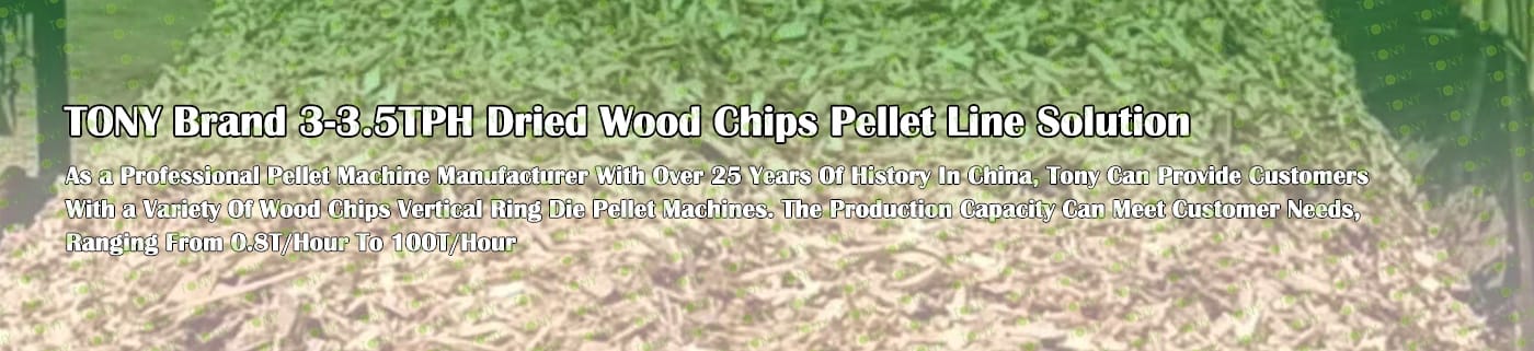 TONY Brand 3-3.5Ton/Hour Dried Wood Chips Pellet Manufacturing Plant can take dried wood chips, various types of wood - related biomass materials, such as wood pallets ,branches, wood logs, and wood shavings. After pretreatment and processing, dried wood chips is solidified into high - density wood pellet fuel. This fuel is an ideal substitute for coal and oil and plays a role in energy conservation and emission reduction. At present, it has been widely used in regions rich in wood resources.