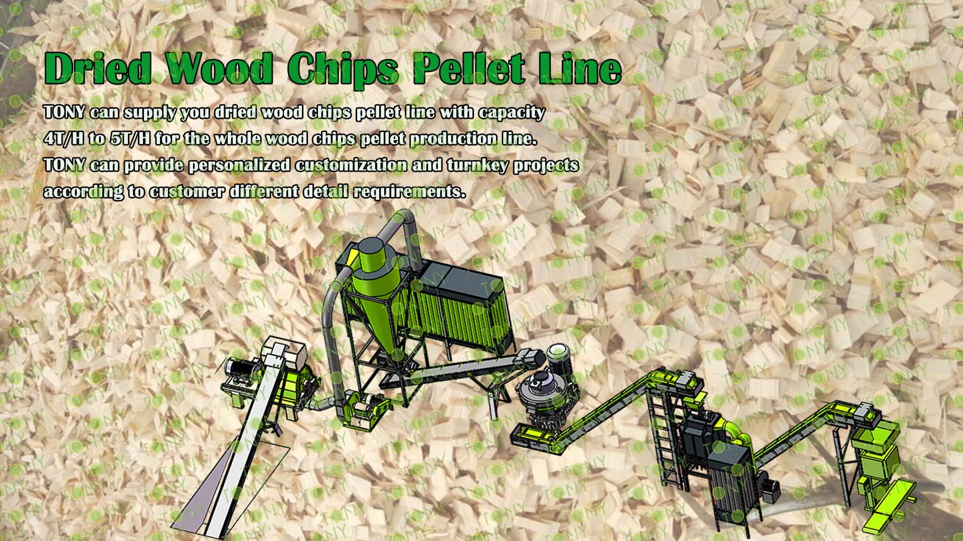 3.TONY Brand 4-5Ton /Hour Dried Wood Chips Pellet Line Project Process