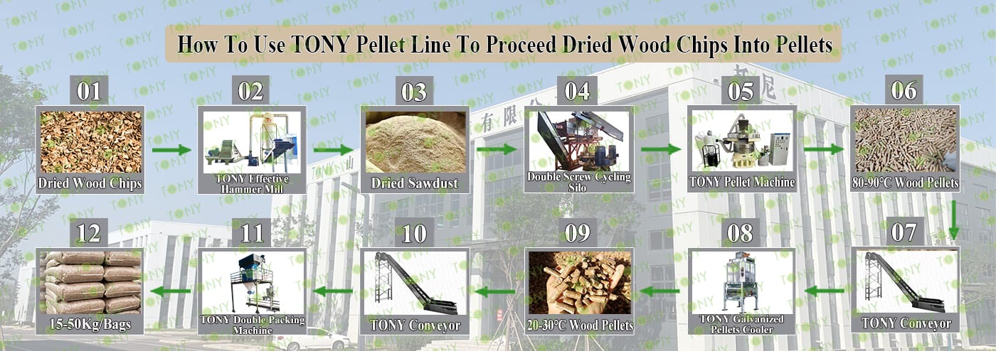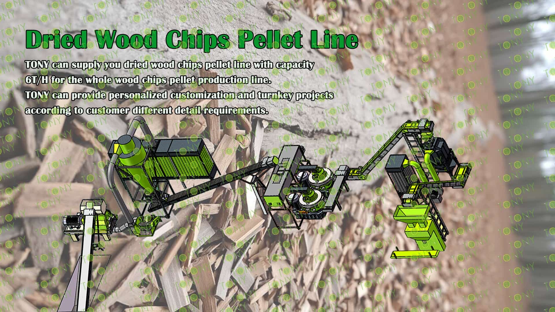 3.TONY Brand 6Ton /Hour Dried Wood Chips Pellet Line Project Process