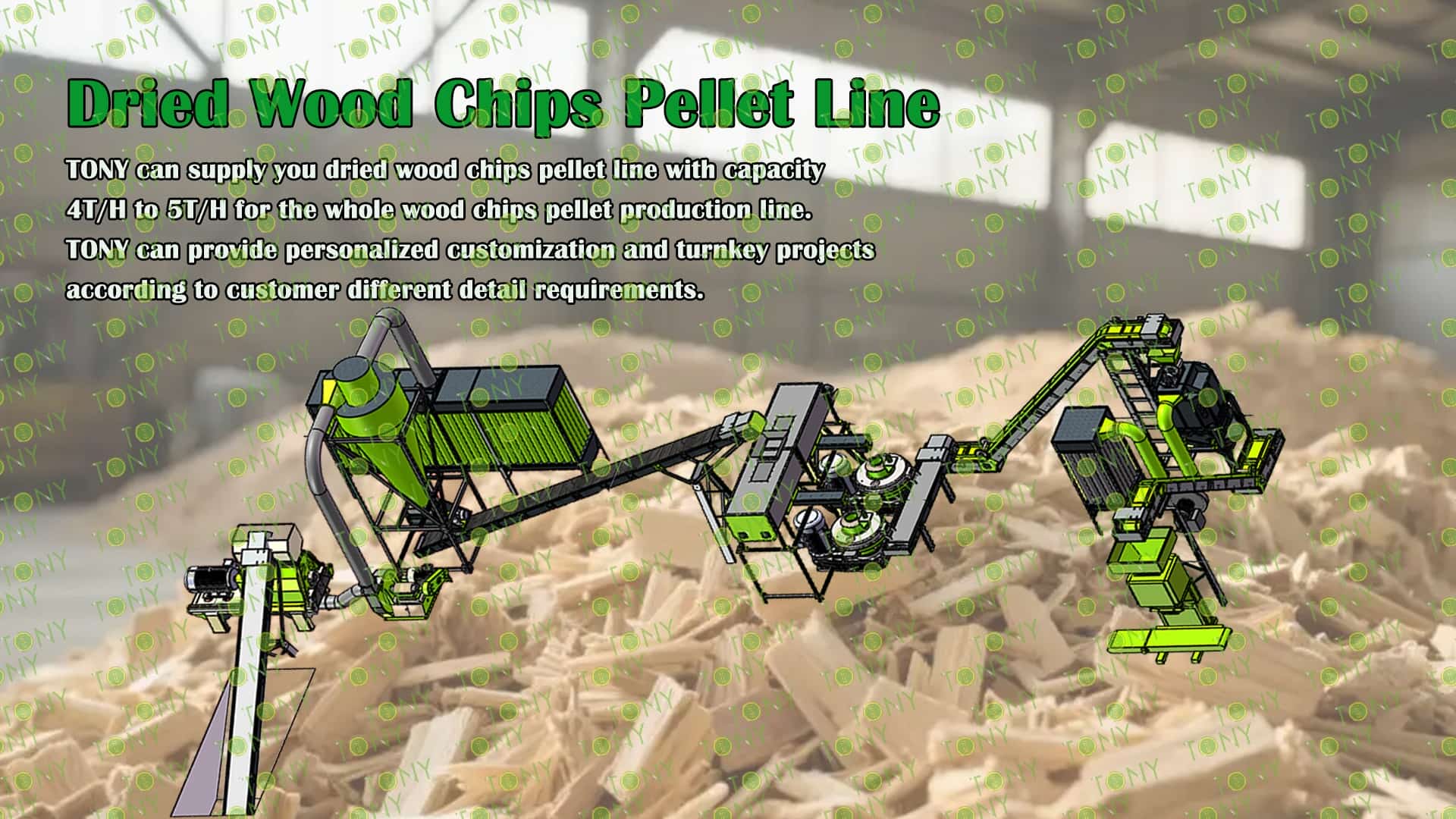 3.TONY Brand 4-5Ton /Hour Dried Wood Chips Pellet Line Project Process