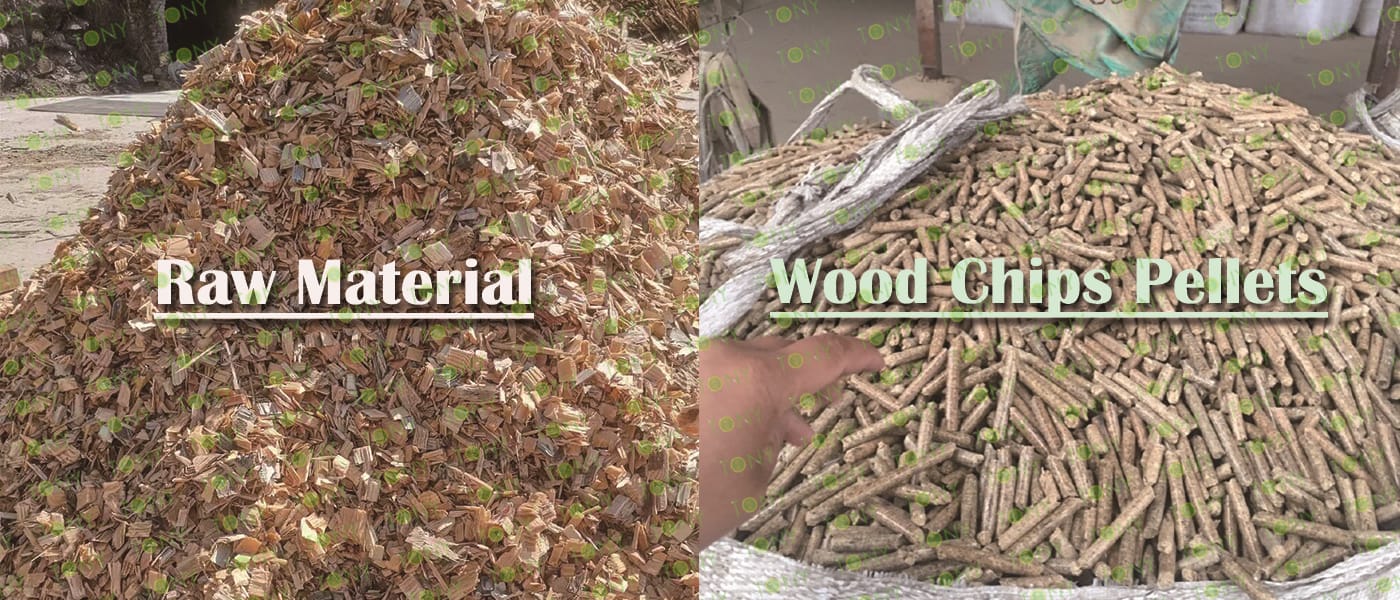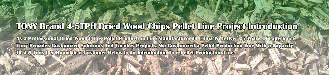 TONY Brand 4-5Ton/Hour Dried Wood Chips Pellet Manufacturing Plant can take dried wood chips, various types of wood - related biomass materials, such as wood pallets ,branches, wood logs, and wood shavings. After pretreatment and processing, dried wood chips is solidified into high - density wood pellet fuel. This fuel is an ideal substitute for coal and oil and plays a role in energy conservation and emission reduction. At present, it has been widely used in regions rich in wood resources.