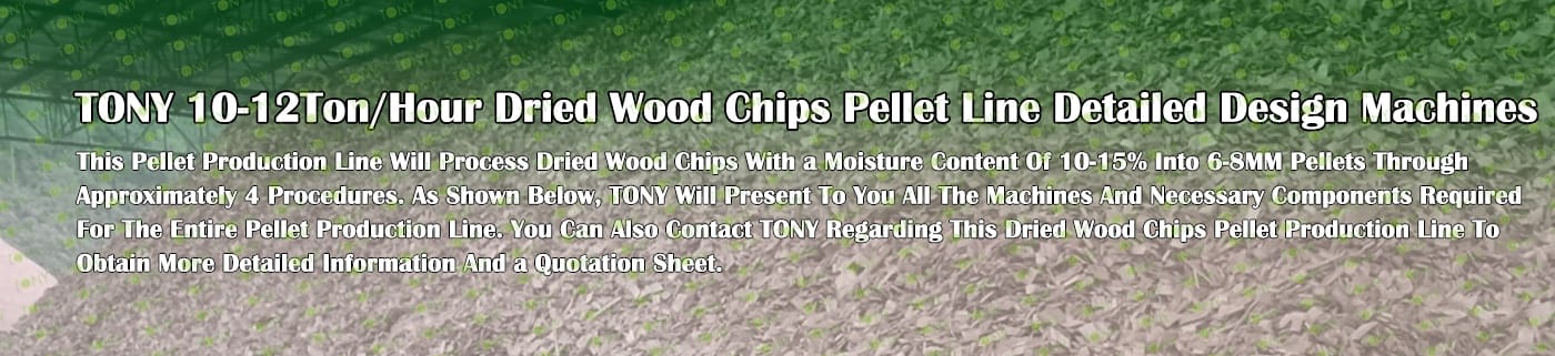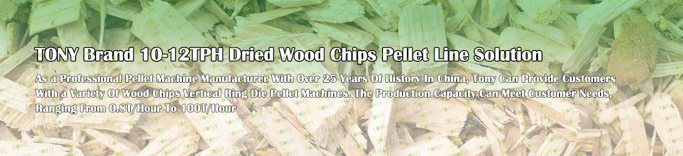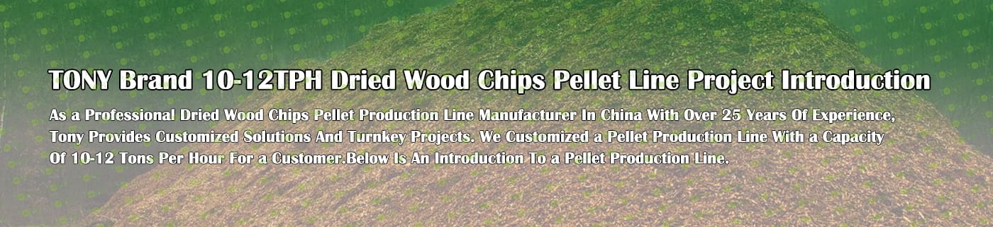 TONY Brand 10-12Ton/Hour Dried Wood Chips Pellet Manufacturing Plant can take dried wood chips, various types of wood - related biomass materials, such as wood pallets ,branches, wood logs, and wood shavings. After pretreatment and processing, dried wood chips is solidified into high - density wood pellet fuel. This fuel is an ideal substitute for coal and oil and plays a role in energy conservation and emission reduction. At present, it has been widely used in regions rich in wood resources.
