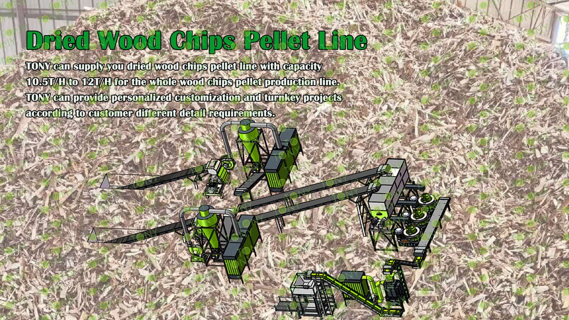 3.TONY Brand 10.5-12Ton /Hour Dried Wood Chips Pellet Line Project Process