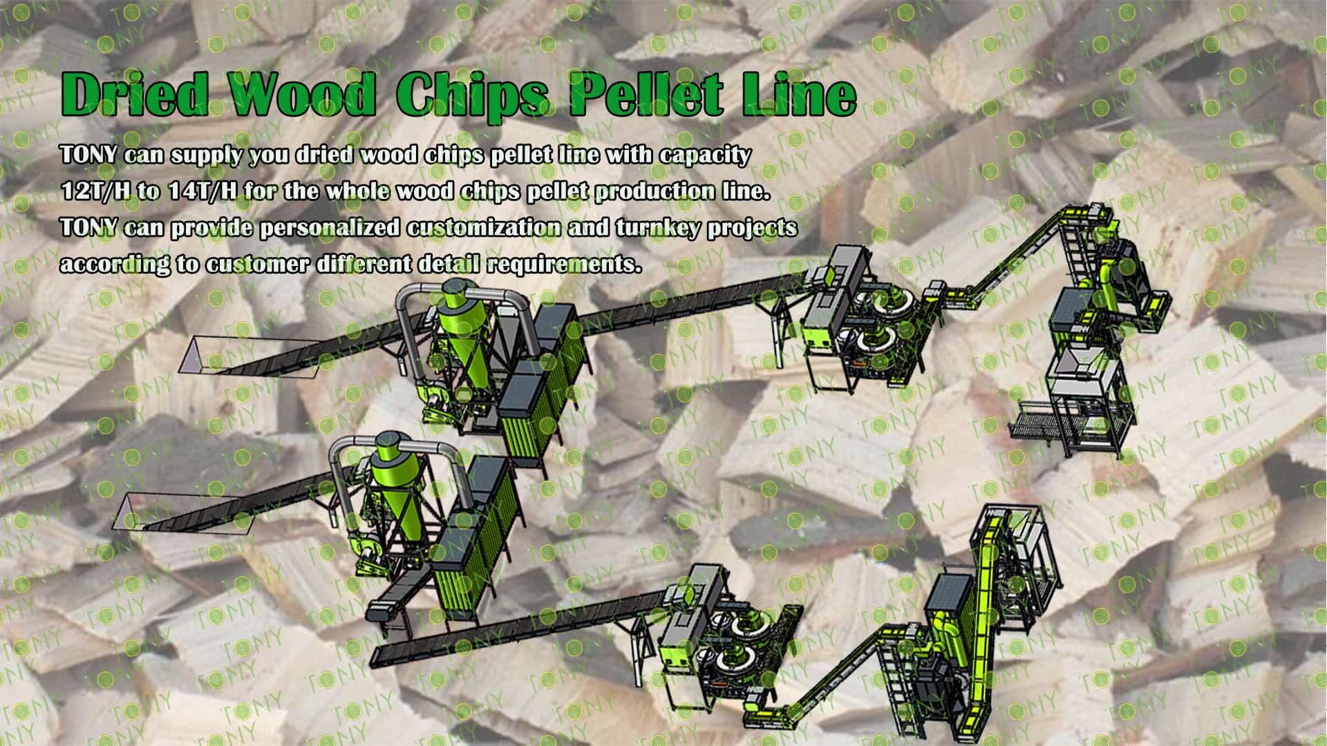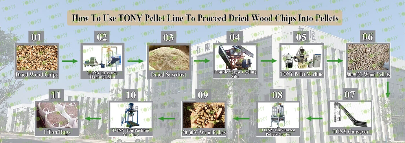 3.TONY Brand 12-14Ton /Hour Dried Wood Chips Pellet Line Project Process