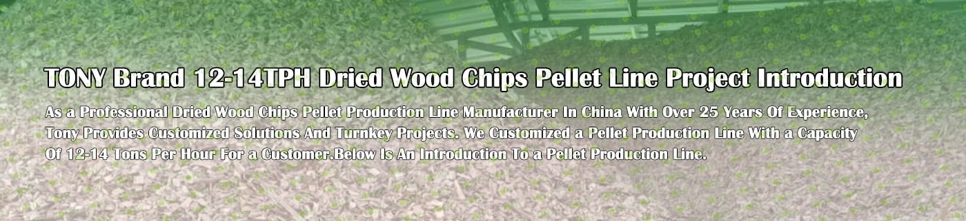 TONY Brand 12-14Ton/Hour Dried Wood Chips Pellet Manufacturing Plant can take dried wood chips, various types of wood - related biomass materials, such as wood pallets ,branches, wood logs, and wood shavings. After pretreatment and processing, dried wood chips is solidified into high - density wood pellet fuel. This fuel is an ideal substitute for coal and oil and plays a role in energy conservation and emission reduction. At present, it has been widely used in regions rich in wood resources.
