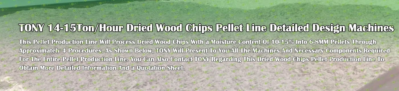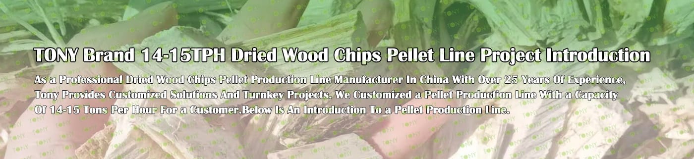 TONY Brand 14-15Ton/Hour Dried Wood Chips Pellet Manufacturing Plant can take dried wood chips, various types of wood - related biomass materials, such as wood pallets,branches, wood logs, and wood shavings. After pretreatment and processing, dried wood chips is solidified into high - density wood pellet fuel. This fuel is an ideal substitute for coal and oil and plays a role in energy conservation and emission reduction. At present, it has been widely used in regions rich in wood resources.