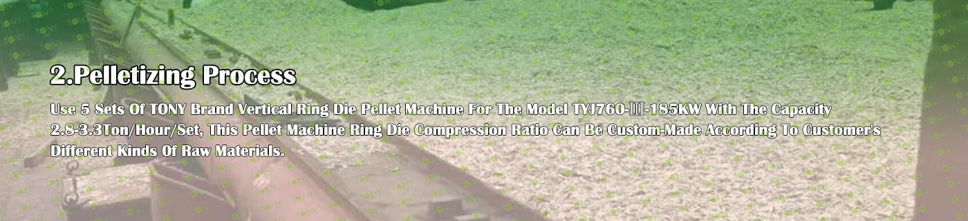 4.Main Machine: Hammer Mill,TONY Pellet Machine TYJ760-Ⅲ-185KW,Pellets Cooler,Packing Machine And Belt Conveyors