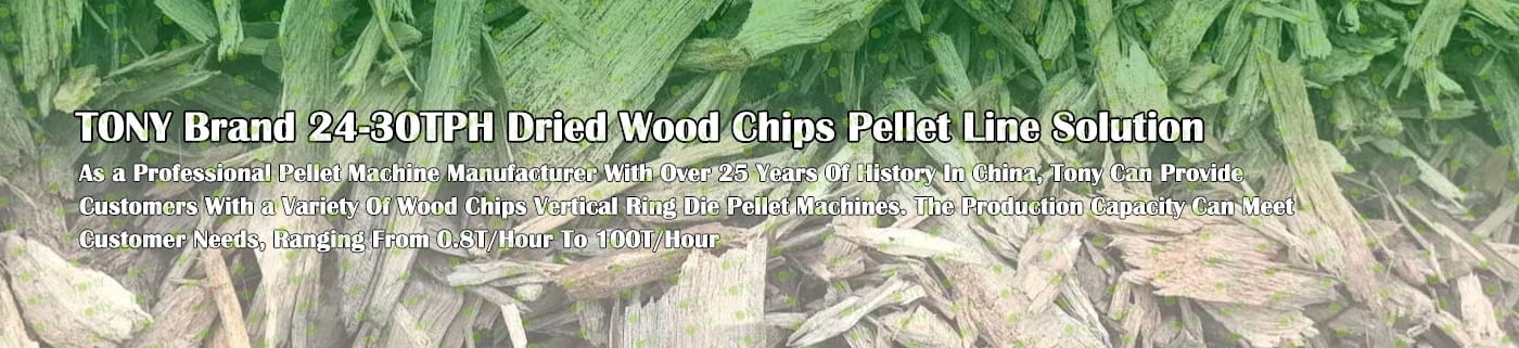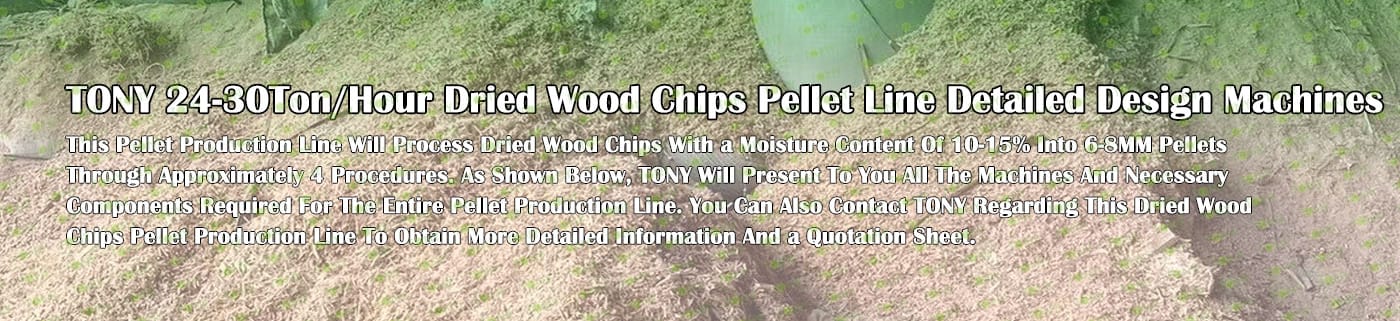 TONY Brand 24-30Ton/Hour Dried Wood Chips Pellet Manufacturing Plant can take dried wood chips, various types of wood - related biomass materials, such as wood pallets ,branches, wood logs, and wood shavings. After pretreatment and processing, dried wood chips is solidified into high - density wood pellet fuel. This fuel is an ideal substitute for coal and oil and plays a role in energy conservation and emission reduction. At present, it has been widely used in regions rich in wood resources.