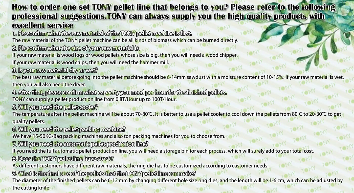 | Next, TONY Will Introduce To You All The Necessary Machinery That Will Be Used For The Whole Pellet Production Line. Some Machines Can Be Custom - Made By Customers According To Different Customers' Detailed Demands. Contact TONY For More Details, Including Quotation And Layout. | ||