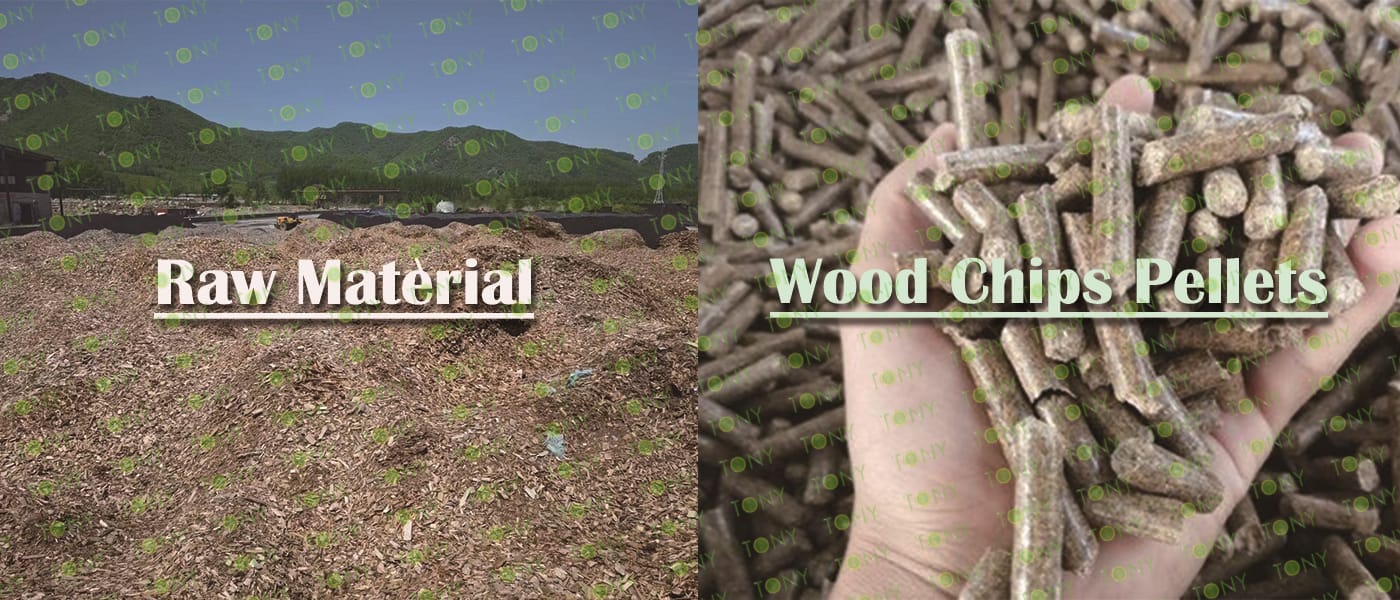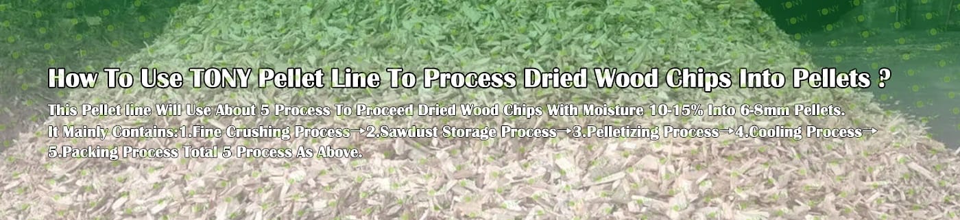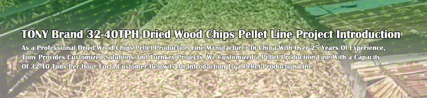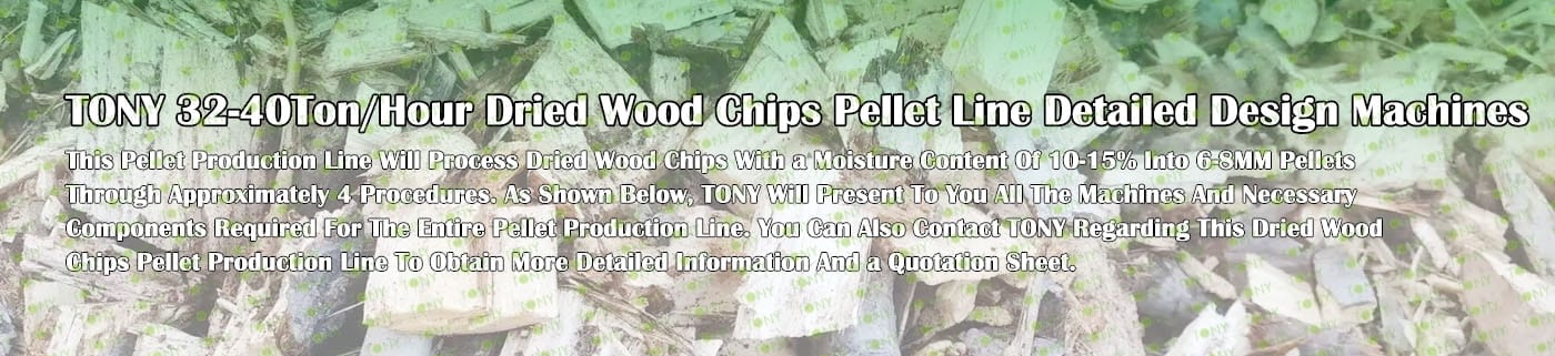 TONY Brand 32-40Ton/Hour Dried Wood Chips Pellet Manufacturing Plant can take dried wood chips, various types of wood - related biomass materials, such as wood pallets ,branches, wood logs, and wood shavings. After pretreatment and processing, dried wood chips is solidified into high - density wood pellet fuel. This fuel is an ideal substitute for coal and oil and plays a role in energy conservation and emission reduction. At present, it has been widely used in regions rich in wood resources.