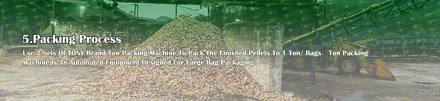 6. Main Equipment: Effective Hammer Mill-TFD100*200-315KW, TONY Large Hydraulic Storage Silo, TONY Pellet Machine TYJ860-Ⅲ-280KW, Galvanized Pellets Cooler, Ton Packing Machine and Belt Conveyors