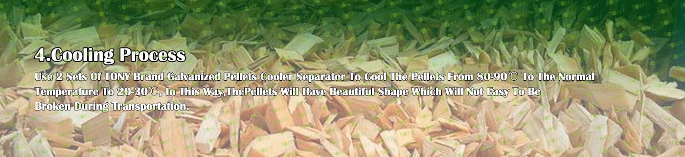 How to use the TONY pellet production line to make pellets from dried wood chips? The process mainly includes the following steps and equipment: 1. Use TONY effective hammer mill to crush the 25-55 mm wood chips into 8-14 mm sawdust. 2.Use TONY large hydraulic storage silo to storage 8-14 mm sawdust 3. Use TONY vertical ring die pellet machine to produce pellets with a diameter of 6-8 mm. 4. Use TONY galvanized pellets cooler to cool the pellets from 80-90°C to 20-30°C. 5. Use TONY ton packing machine to pack the pellets into bags, each weighing 1 ton. For more detailed information and quotations, you can contact TONY. TONY can provide all the above - mentioned products at highly competitive prices and with excellent quality. |