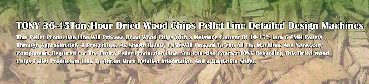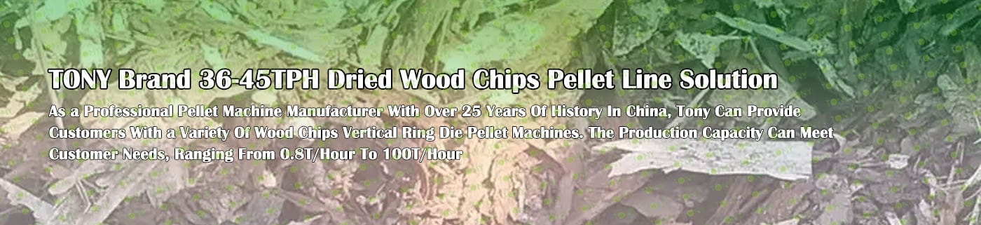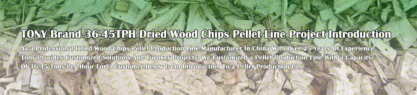 TONY Brand 36-45Ton/Hour Dried Wood Chips Pellet Manufacturing Plant can take dried wood chips, various types of wood - related biomass materials, such as wood pallets ,branches, wood logs, and wood shavings. After pretreatment and processing, dried wood chips is solidified into high - density wood pellet fuel. This fuel is an ideal substitute for coal and oil and plays a role in energy conservation and emission reduction. At present, it has been widely used in regions rich in wood resources.