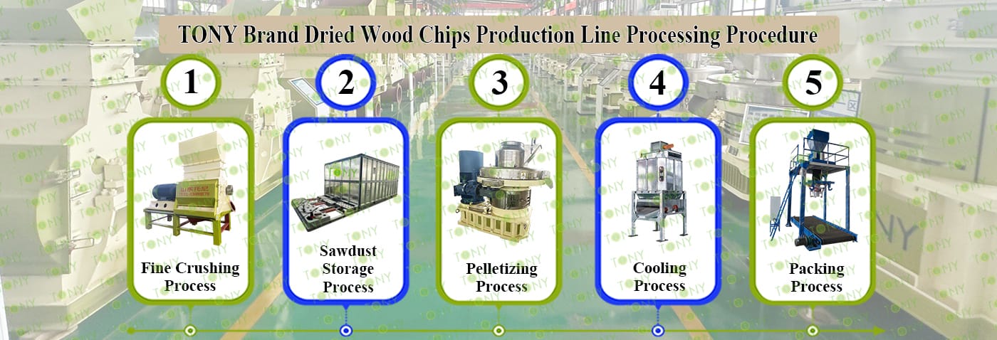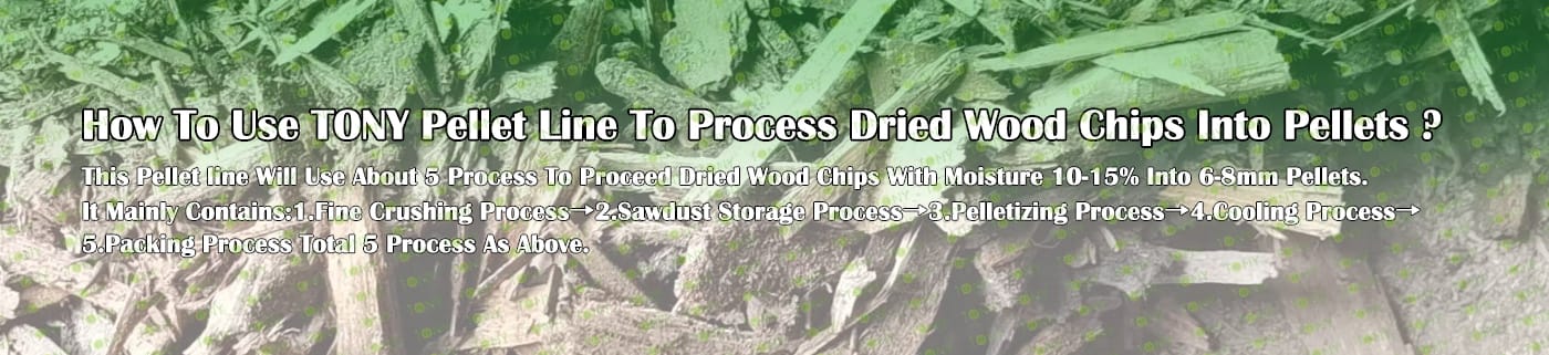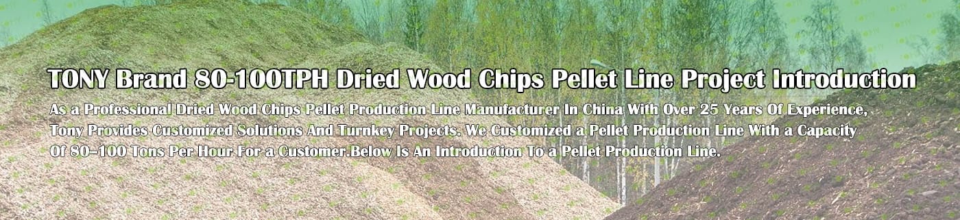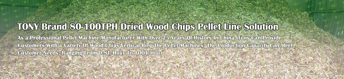 TONY Brand 80-100Ton/Hour Dried Wood Chips Pellet Manufacturing Plant can take dried wood chips, various types of wood - related biomass materials, such as wood pallets ,branches, wood logs, and wood shavings. After pretreatment and processing, dried wood chips is solidified into high - density wood pellet fuel. This fuel is an ideal substitute for coal and oil and plays a role in energy conservation and emission reduction. At present, it has been widely used in regions rich in wood resources.