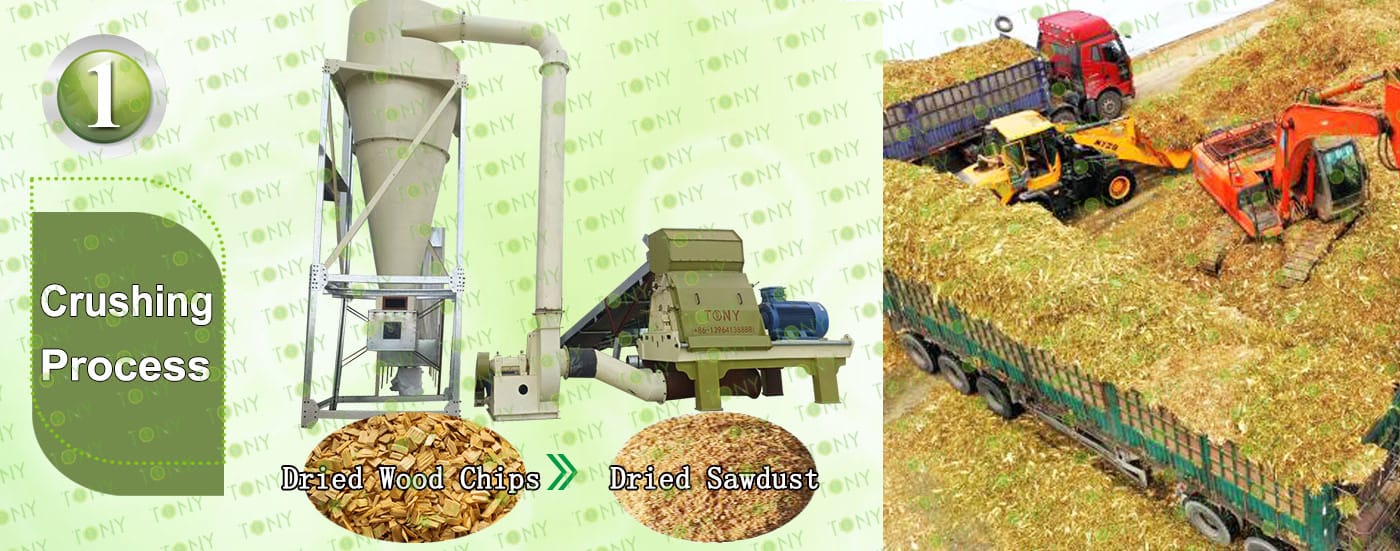 A.This process is mainly used to crush 25-55mm wood chips into 8-14mm sawdust.