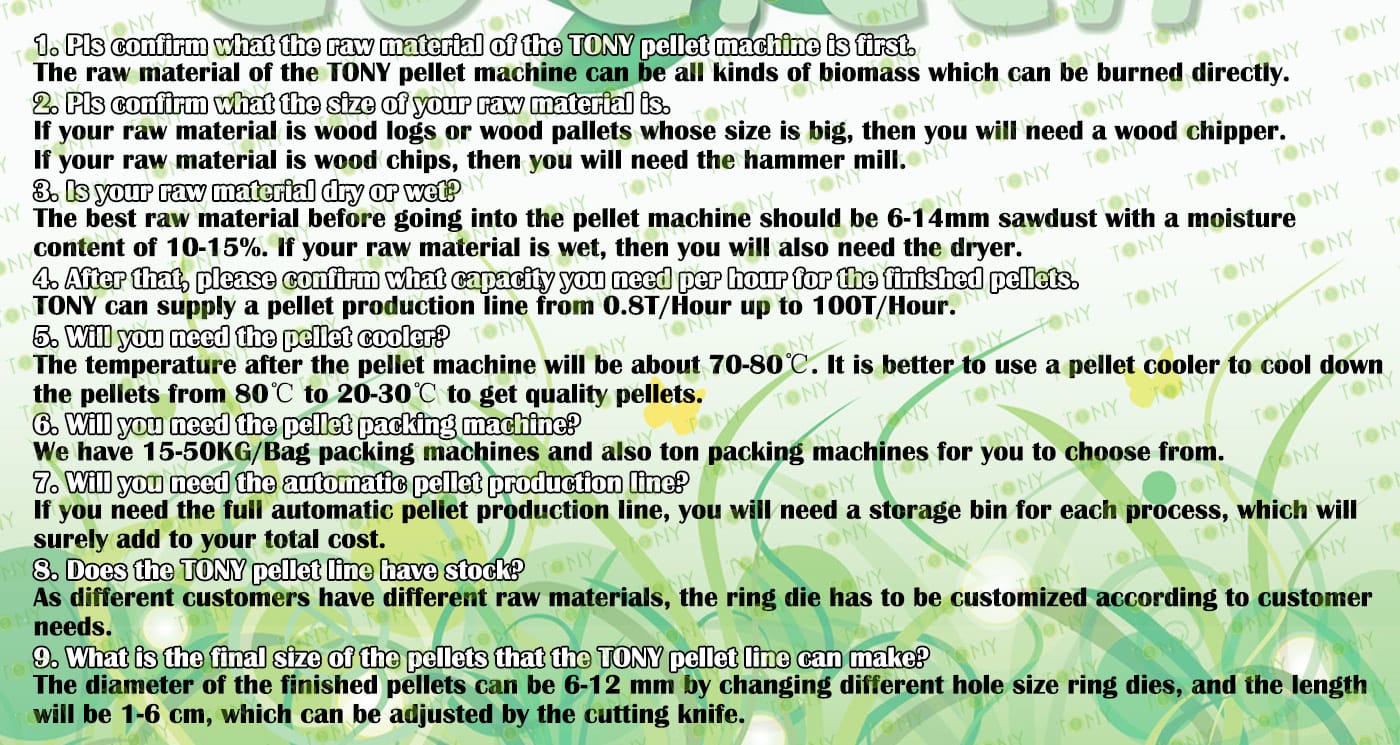 Next, TONY Will Introduce To You All The Necessary Machinery That Will Be Used For The Whole Pellet Production Line. Some Machines Can Be Custom - Made By Customers According To Different Customers' Detailed Demands. Contact TONY For More Details, Including Quotation And Layout. |
