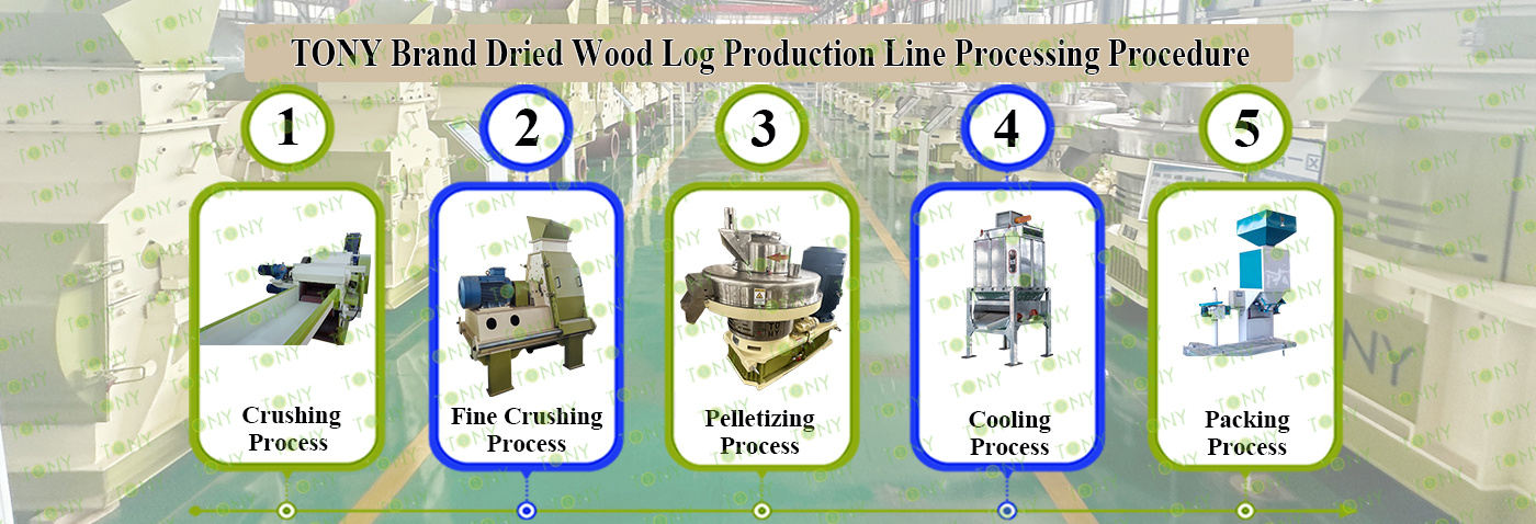 3.TONY Brand 1.5-2Ton /Hour Dried Wood Log Pellet Line Project Process