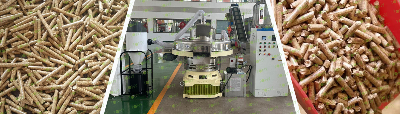 6. Main Equipment: Wood Chipper TPQ216 - 55KW, Effective Hammer mill-TFD65*55-45kw, TONY Pellet Machine TYJ551 - Ⅲ - 110kw, Pellet Cooler, Small Packing Machine and Belt Conveyors