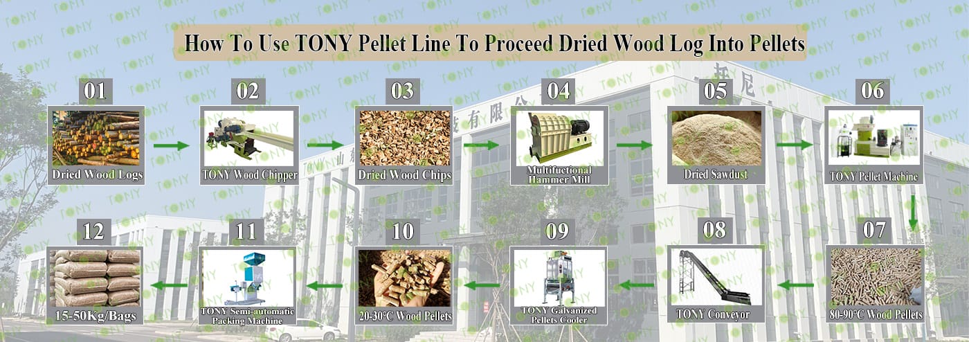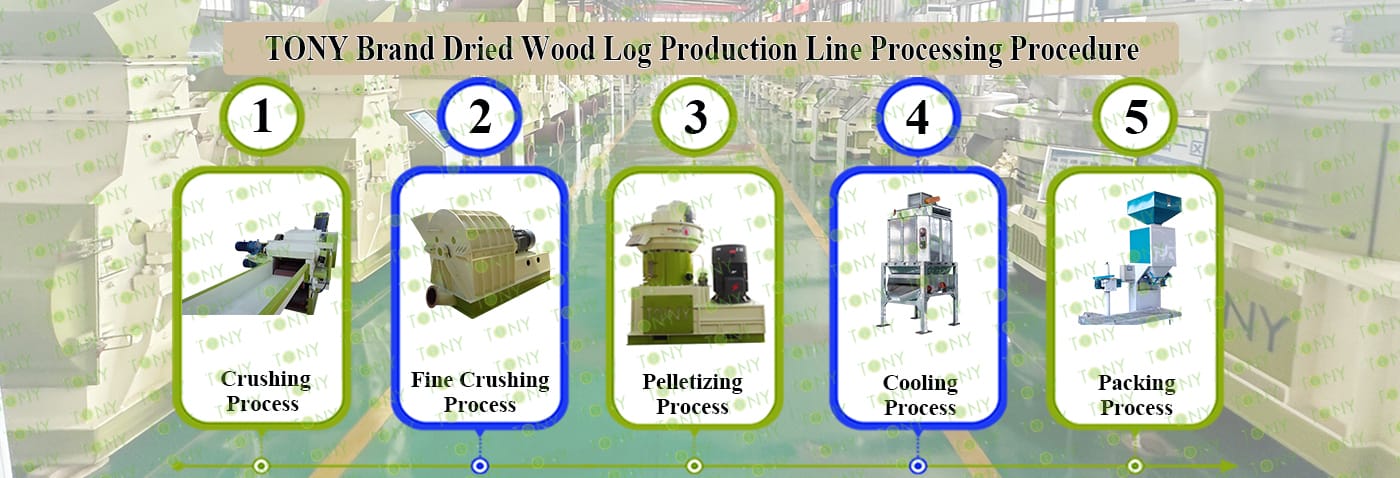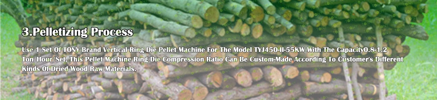 3.TONY Brand 0.8-1.2 Ton /Hour Dried Wood Log Pellet Line Project Process