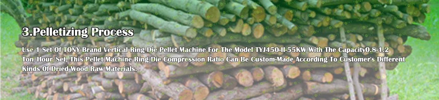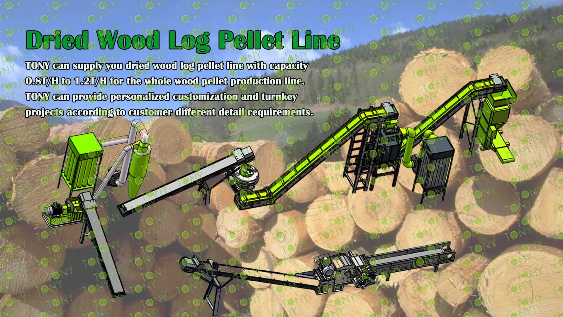 3.TONY Brand 0.8-1.2Ton /Hour Dried Wood Log Pellet Line Project Process