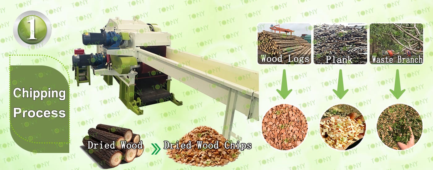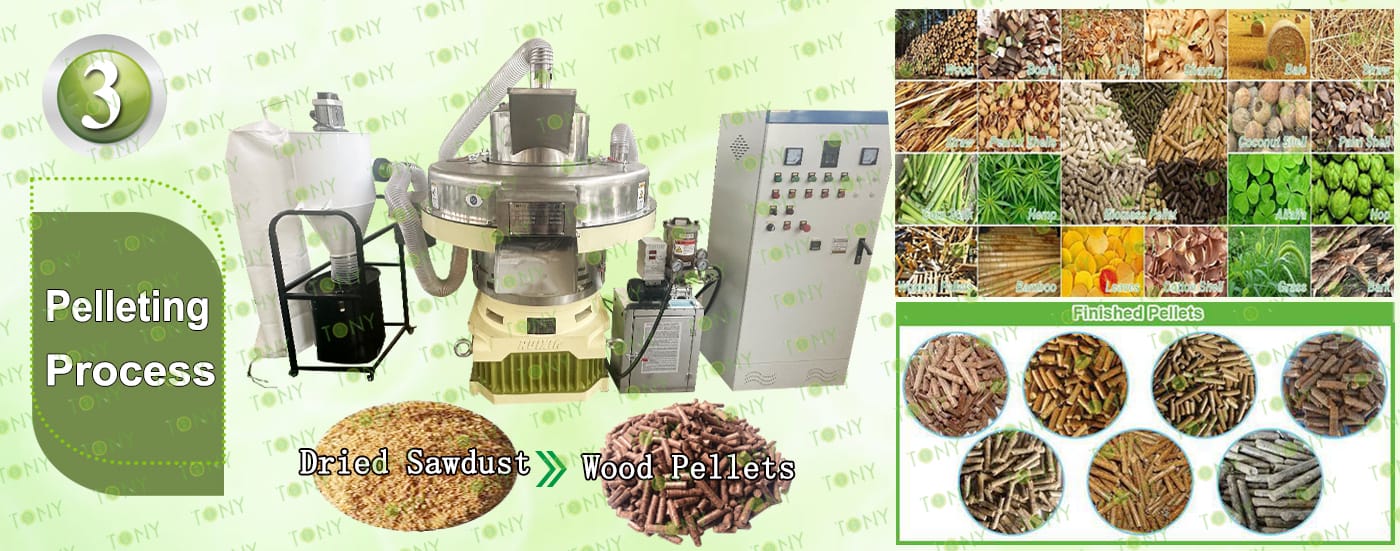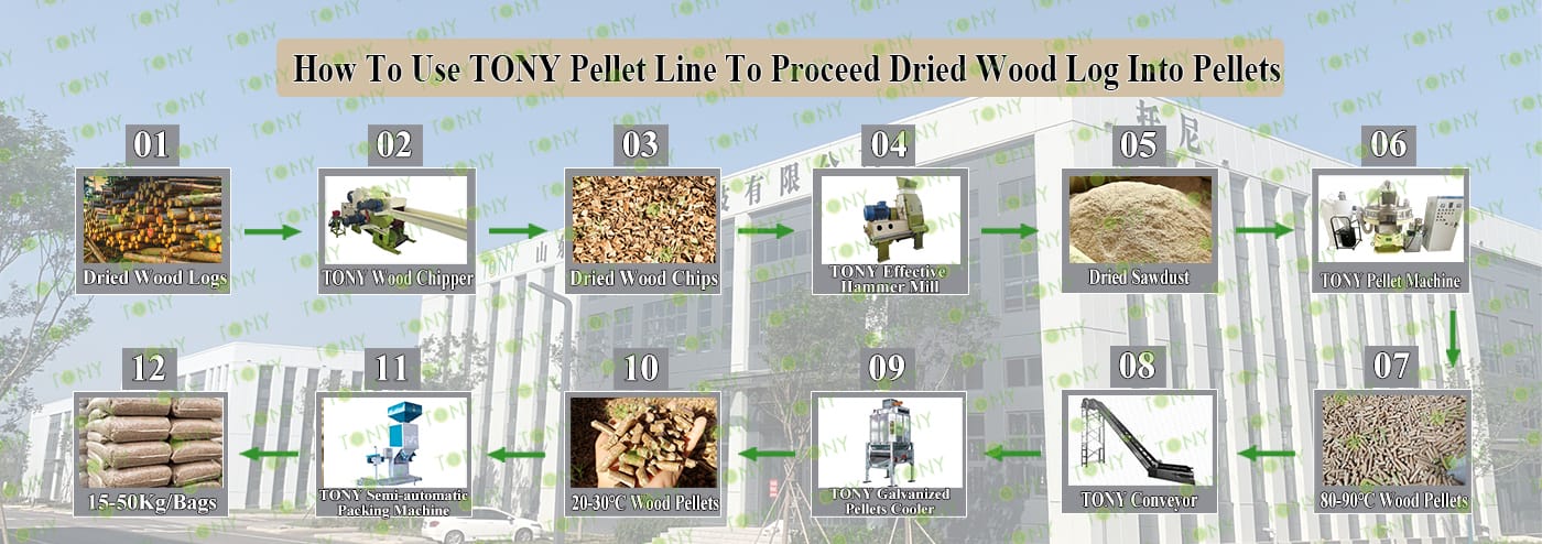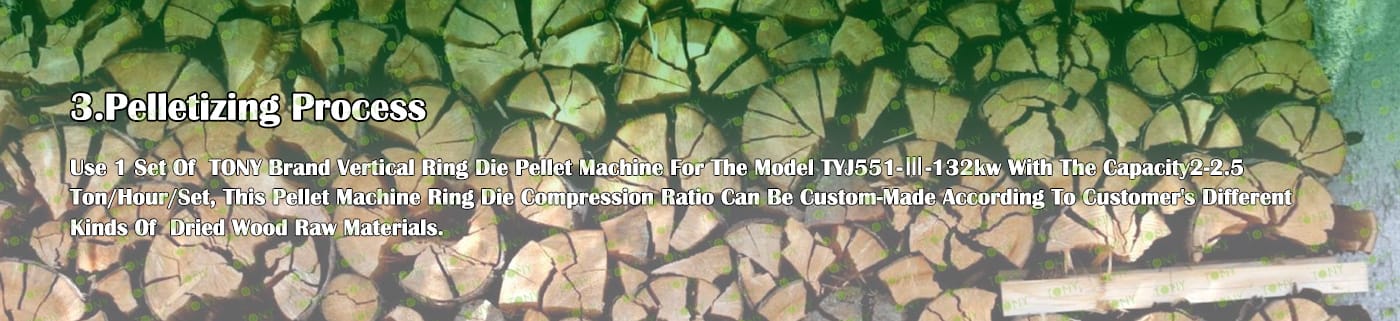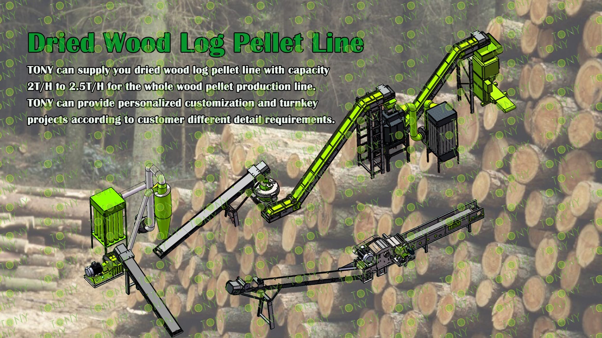 3.TONY Brand 2-2.5Ton /Hour Dried Wood Log Pellet Line Project Process