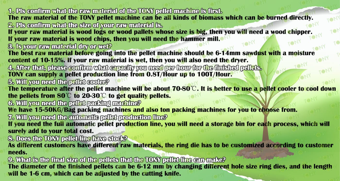 Next, TONY Will Introduce To You All The Necessary Machinery That Will Be Used For The Whole Pellet Production Line. Some Machines Can Be Custom - Made By Customers According To Different Customers' Detailed Demands. Contact TONY For More Details, Including Quotation And Layout. |