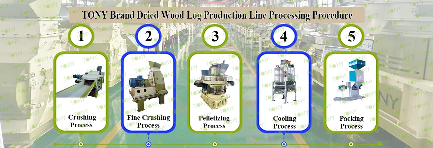 3.TONY Brand 2.8-3.2Ton /Hour Dried Wood Log Pellet Line Project Process